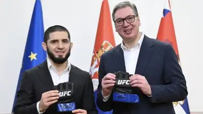Действующий обладатель чемпионского титула UFC в полусреднем весе россиянин Ислам Махачев встретился с президентом Сербии Александром Вучичем в Белграде, передаёт sportarena.kz.