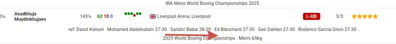 Шандор Бабаи отдал свой голос в пользу Муйдинхуджаева 29-28. При этом он оказался единственным судьёй, отдавший Зейнуллинову победу в одном раунде. Все остальные выставили 30-27 "за" узбекского бойца.