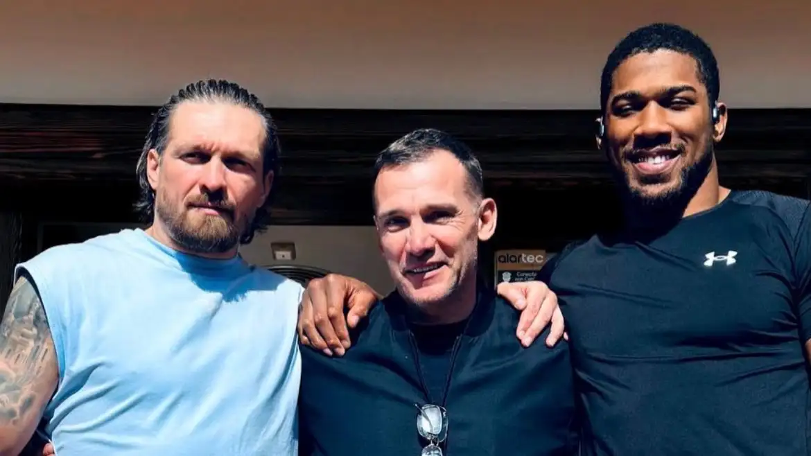 Бывший абсолютный чемпион мира по боксу украинец Александр Усик вместе со своим экс-соперником, а ныне другом британцем Энтони Джошуа провели встречу с президентом Украинской ассоциации футбола (УАФ) Андреем Шевченко, передаёт sportarena.kz.