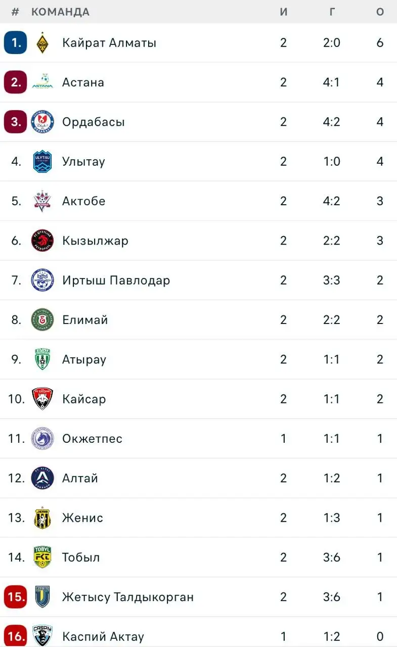 Как выглядит турнирная таблица КПЛ после второго тура
