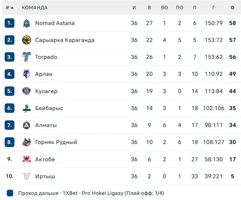Как выглядит турнирная таблица чемпионата Казахстана по хоккею перед возобновлением сезона