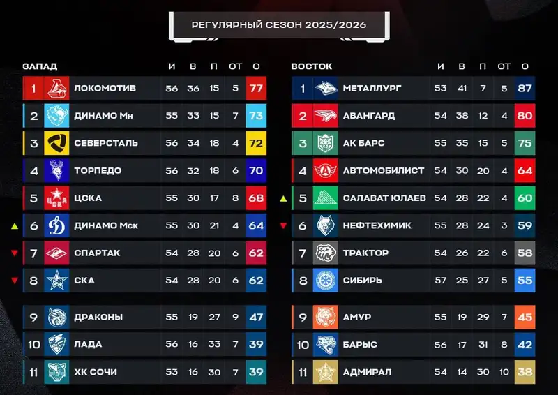 Как выглядит турнирная таблица КХЛ перед матчем "Барыс" – "Лада"