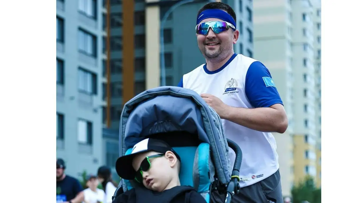 Пока Арсен может преодолевать эти расстояния только в роли штурмана. Коляску по дорожкам марафонов ведет папа Куаныш. По его словам, за это время они с сыном стали не просто напарниками по бегу, а настоящей командой, которая поддерживает друг друга на каждом километре.